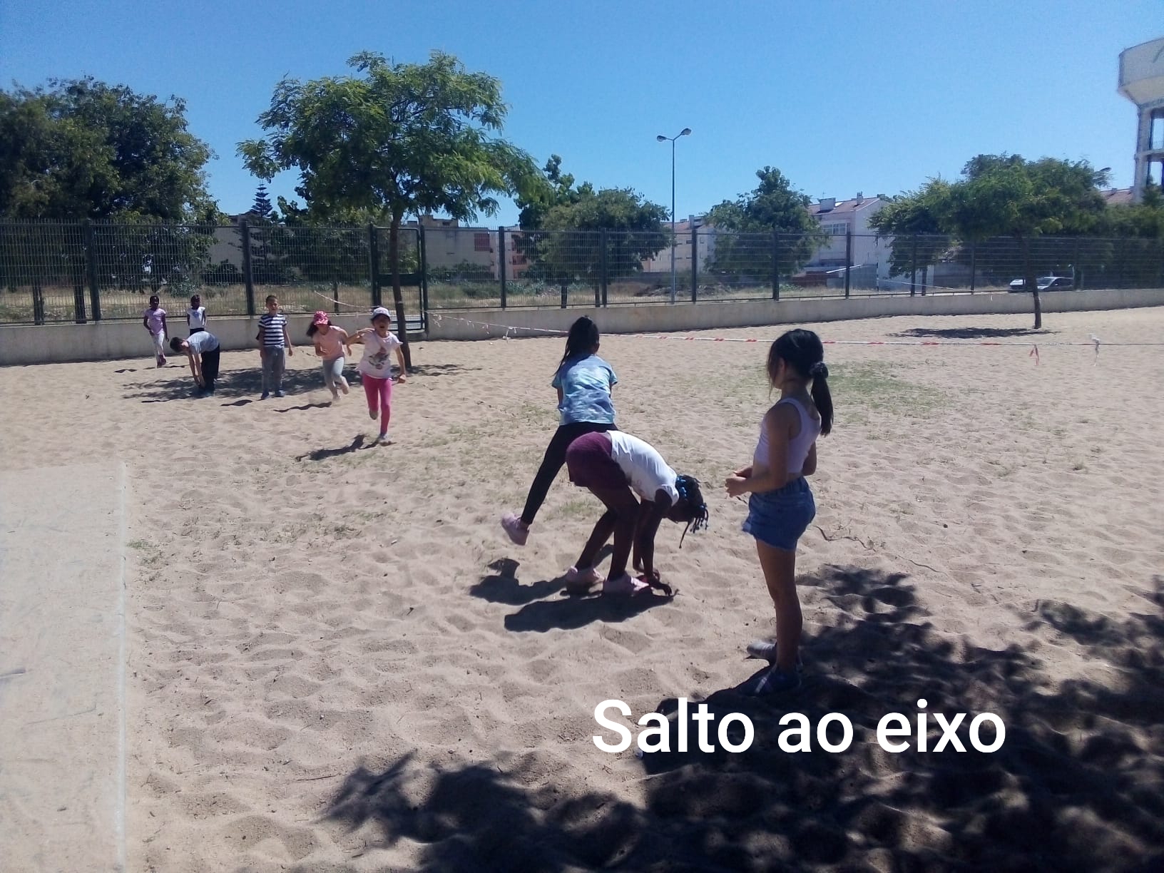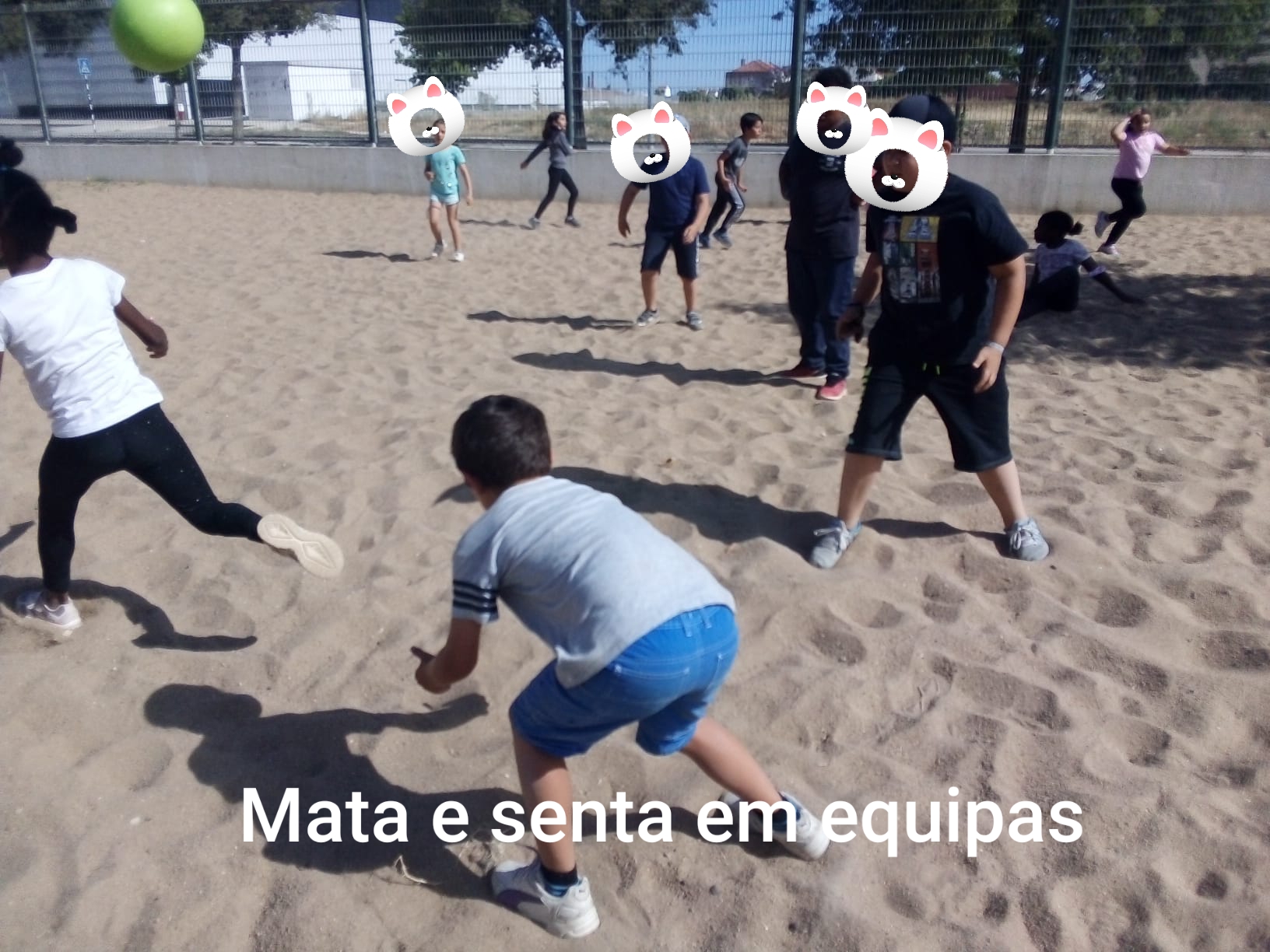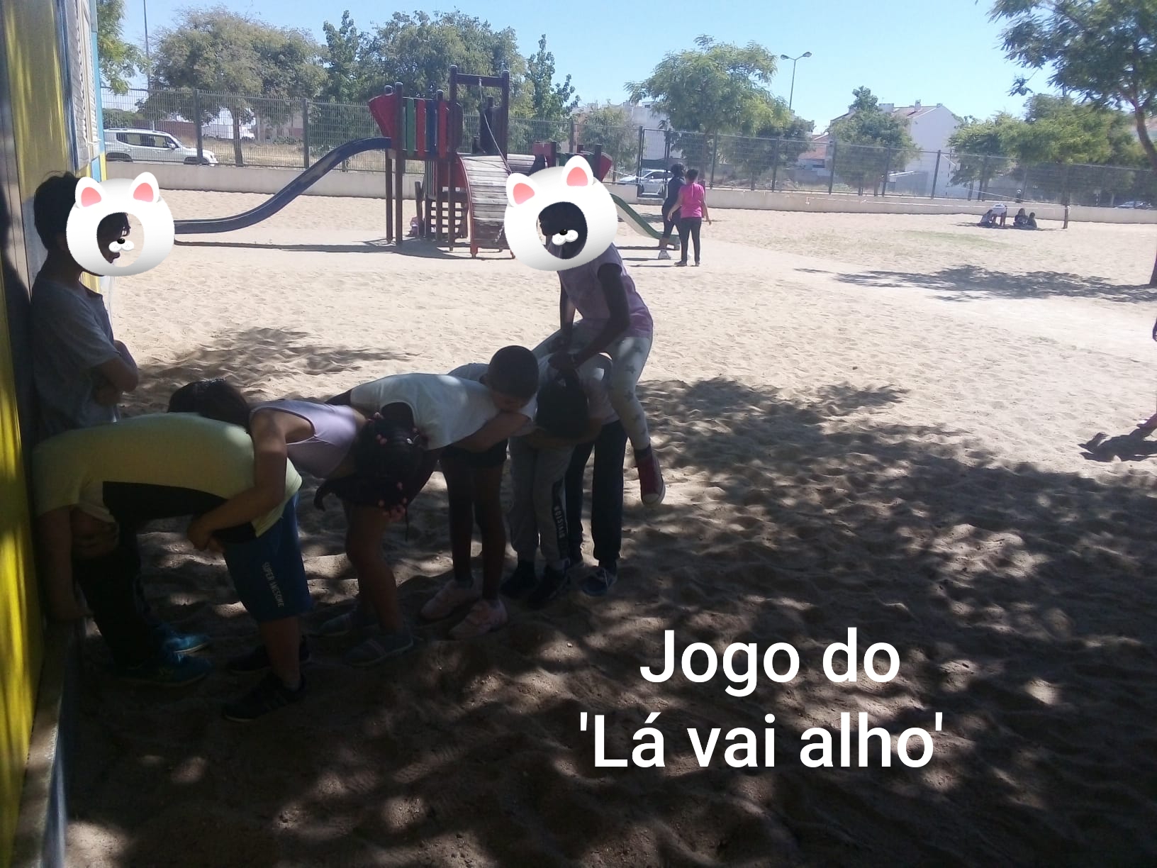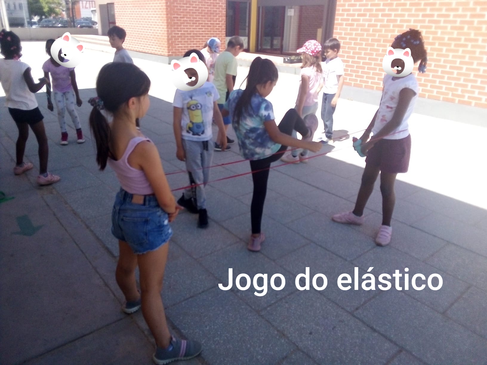 Depois do último confinamento, as AEC’s voltaram à ação! Hoje fica para a atividade física com um jogo do elástico, salto ao eixo, jogo do “Lá vai alho”, futebol sentado e mata!